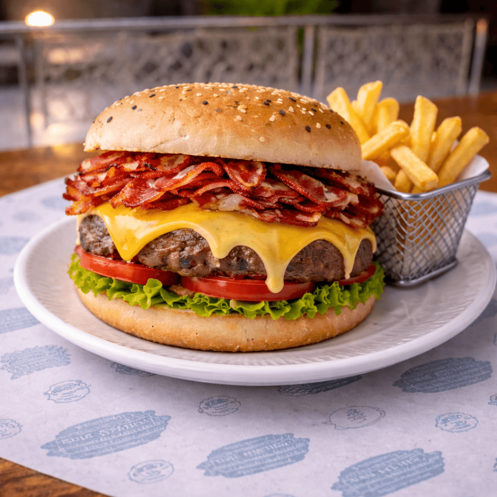 200 g de carne, full tocineta, doble queso y vegetales.