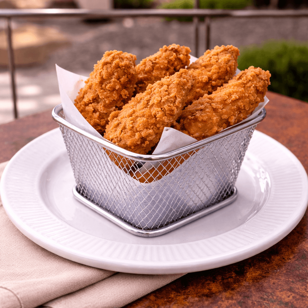 Tiras de pollo crujiente, jugosas por dentro y llenas de sabor.